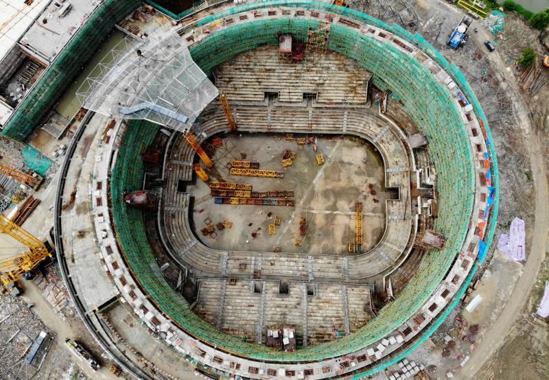 圖為2020年6月9日,從空中俯瞰正在建設(shè)中的杭州亞運(yùn)會(huì)乒乓球館。