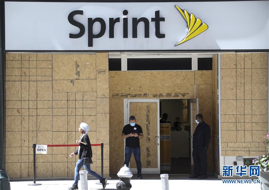 6月8日,店員在美國紐約一家電信運營商營業(yè)廳外等待顧客。在因新冠疫情進入“居家令”近三個月之后,美國紐約市于當地時間8日開始“解封”,進入經濟重啟的第一階段。新華社記者王迎攝