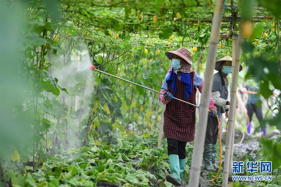 6月9日,在江華瑤族自治縣濤圩鎮(zhèn)鳳尾村蔬菜基地,農(nóng)戶對(duì)農(nóng)作物進(jìn)行噴灑消毒。近日,受連續(xù)強(qiáng)降雨影響,湖南省永州市江華瑤族自治縣遭遇洪澇災(zāi)害,部分農(nóng)田受災(zāi)。目前,江華瑤族自治縣洪水已退,群眾在當(dāng)?shù)叵嚓P(guān)部門(mén)引導(dǎo)下積極開(kāi)展生產(chǎn)自救。新華社記者陳澤國(guó)攝