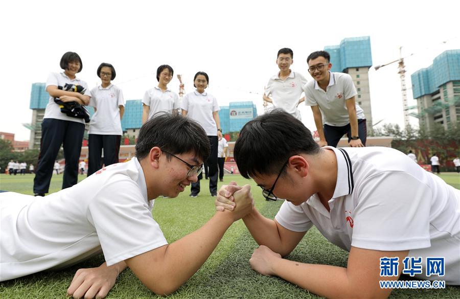 6月9日,河北省衡水市第二中學(xué)的高三學(xué)生在操場(chǎng)進(jìn)行掰手腕比賽。2020年高考臨近,河北省衡水市第二中學(xué)組織開(kāi)展多種形式的集體“減壓”活動(dòng),幫助高三學(xué)生在緊張備考之余釋放身心壓力,以輕松、樂(lè)觀(guān)、自信的心態(tài)迎接高考。新華社記者朱旭東攝