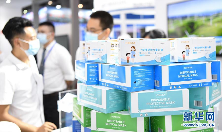 6月10日拍攝的展會上的口罩生產商展位。當日,廣州國際防疫物資展覽會在保利世貿博覽館舉行。本次展會面積共計3.6萬平方米,設有防疫產品、設備、綜合服務、原輔料等4個展區(qū),參展企業(yè)約600家。新華社記者鄧華攝