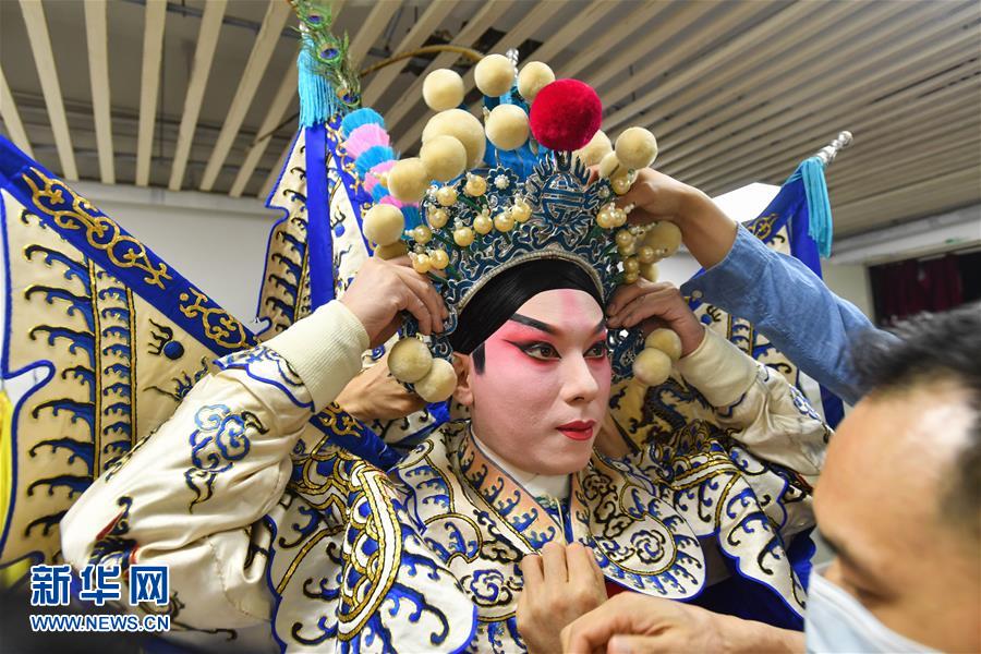 6月12日,廣東粵劇院演員在為演出做準(zhǔn)備。當(dāng)日,廣東粵劇院聯(lián)合酷狗網(wǎng)絡(luò)直播平臺(tái)推出“周末睇大戲(線上版)”,將線下劇場(chǎng)轉(zhuǎn)移到線上,在酷狗直播間里呈現(xiàn)粵劇的經(jīng)典劇目,為劇迷們打造一場(chǎng)“云端”盛宴。新華社記者 劉大偉 攝