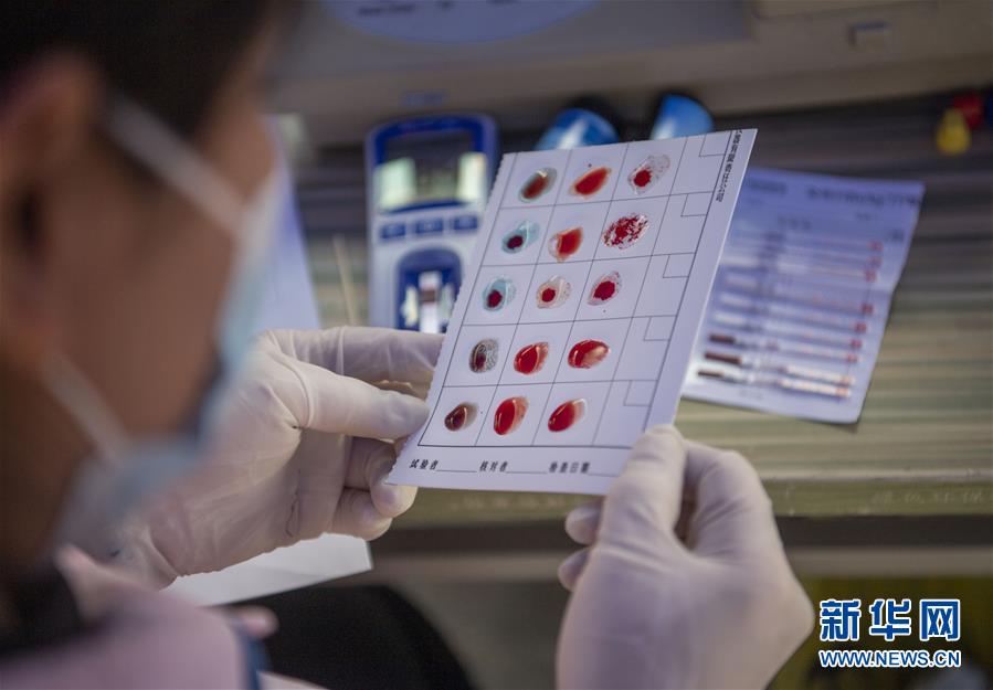 6月14日,在拉薩市宇拓路的獻(xiàn)血點(diǎn),西藏自治區(qū)血液中心的工作人員在給獻(xiàn)血者的血液樣本進(jìn)行血型檢測(cè)。當(dāng)日是世界獻(xiàn)血者日。為宣傳無償獻(xiàn)血相關(guān)知識(shí)、傳播無償獻(xiàn)血公益理念,世界獻(xiàn)血者日宣傳和采血活動(dòng)在拉薩市舉辦。新華社記者 孫非 攝
