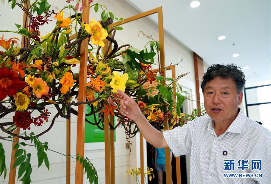 6月13日,第45屆世界技能大賽花藝項目冠軍、上海應用技術大學學生陸亦煒在介紹自己主持設計和創(chuàng)作的花藝作品。當日,“2020中國(上海)萱草文化節(jié)”在上海應用技術大學開幕,校園里數(shù)百個品種的萱草花競相綻放,萱草科研推廣、萱草文化交流等多項活動同時舉行。新華社記者 劉穎 攝