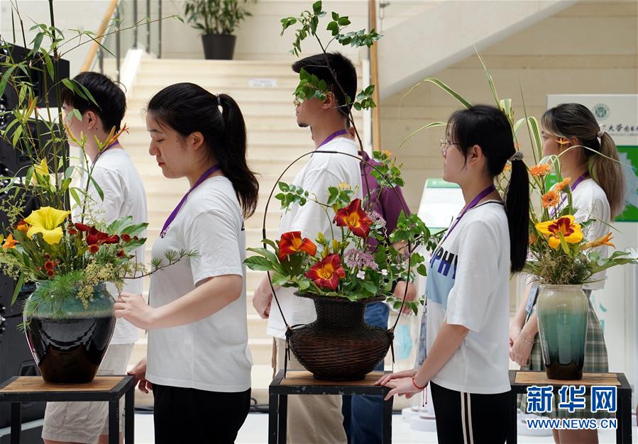 6月13日,上海應用技術大學的學生們設計創(chuàng)作的萱草花藝作品即將在開幕式現(xiàn)場亮相。當日,“2020中國(上海)萱草文化節(jié)”在上海應用技術大學開幕,校園里數(shù)百個品種的萱草花競相綻放,萱草科研推廣、萱草文化交流等多項活動同時舉行。新華社記者 劉穎 攝