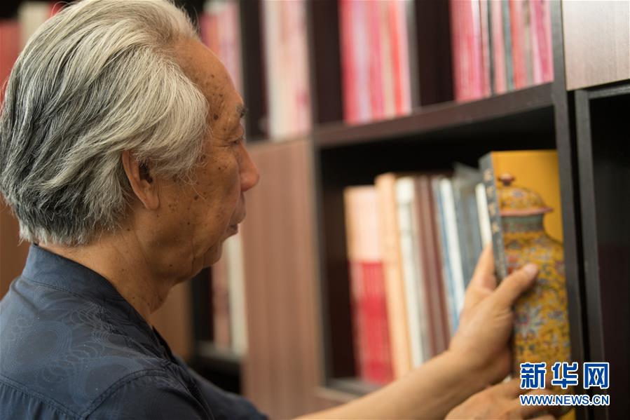 6月17日,在位于浙江慈溪的工作室,聞長慶在查閱關(guān)于古代陶瓷的書籍。