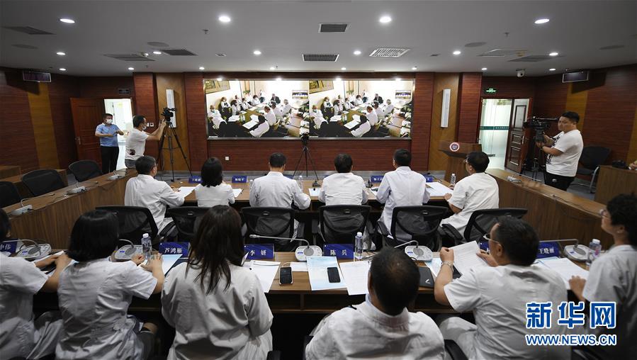 6月17日,寧夏醫(yī)科大學(xué)總醫(yī)院專家與羅馬第一公共醫(yī)療衛(wèi)生中心醫(yī)務(wù)人員進行視頻交流。新華社記者 王鵬 攝