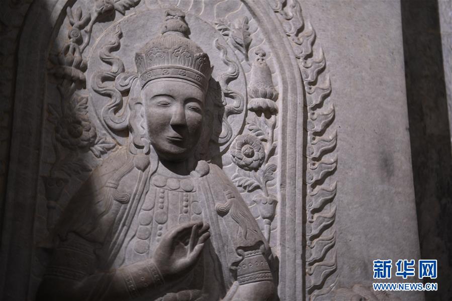 這是清西陵崇陵地宮石門(mén)上的雕塑(6月18日攝)。新華社記者朱旭東攝