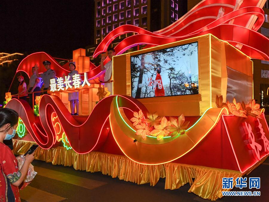 當(dāng)日,2020長春消夏藝術(shù)節(jié)啟幕,8輛造型新穎的花車在城市主干道巡游,吸引眾多市民觀看。據(jù)了解,本屆消夏藝術(shù)節(jié)主打“夜經(jīng)濟”“夜文化”,設(shè)置露天電影放映區(qū)、群眾文藝展演區(qū)、貧困村農(nóng)副產(chǎn)品直銷區(qū)、彩車展示區(qū)等功能區(qū),以文化為主線,進一步激活文旅消費。新華社記者張楠攝