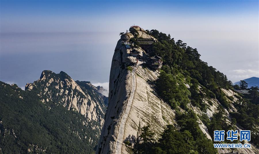 6月18日拍攝的華山西峰(無人機(jī)照片)。當(dāng)日,西岳華山經(jīng)歷連續(xù)三天暴雨后,迎來燦爛的陽光。新華社記者 陶明 攝
