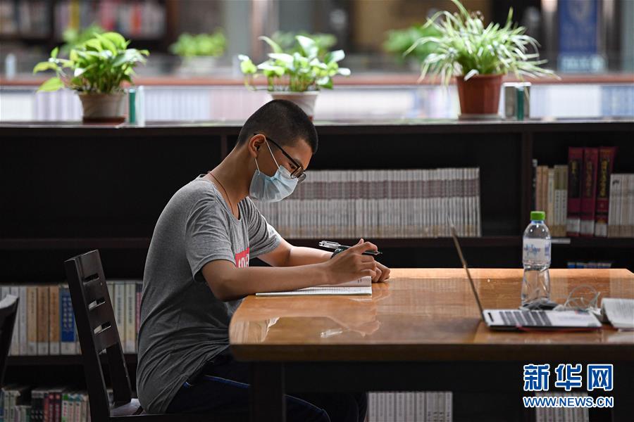6月21日,市民在海南省圖書館學(xué)習(xí)。近日,海口持續(xù)高溫,不少市民在做好疫情防控的前提下來到海南省圖書館,在涼爽、清靜的環(huán)境里閱讀學(xué)習(xí),充實自我。新華社記者蒲曉旭攝