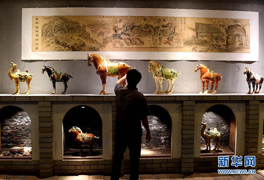 游光明在河南省鞏義市站街鎮(zhèn)小黃冶村的傳習所里查看作品(6月19日攝)。新華社記者李安攝