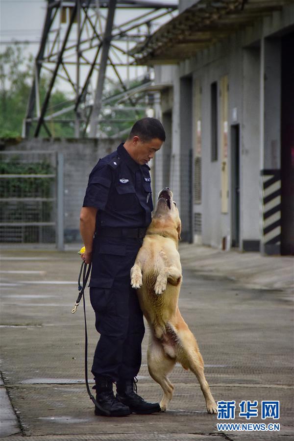 6月24日,訓(xùn)導(dǎo)員周吉榮調(diào)教緝毒犬“多多”。新華社記者 鄭夢(mèng)雨 攝