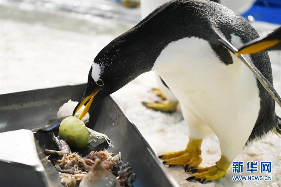 6月24日,哈爾濱極地館的企鵝在享用工作人員送來的美食。當(dāng)日,哈爾濱極地館的工作人員特地準(zhǔn)備了“魚粽”“肉粽”,讓生活在這里的極地動(dòng)物也品嘗一下端午美食。新華社記者王建威攝