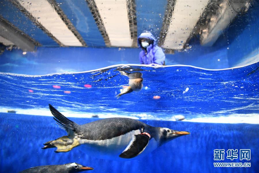 6月24日,哈爾濱極地館的工作人員為水中的企鵝投放“魚粽”。當(dāng)日,哈爾濱極地館的工作人員特地準(zhǔn)備了“魚粽”“肉粽”,讓生活在這里的極地動(dòng)物也品嘗一下端午美食。新華社記者王建威攝