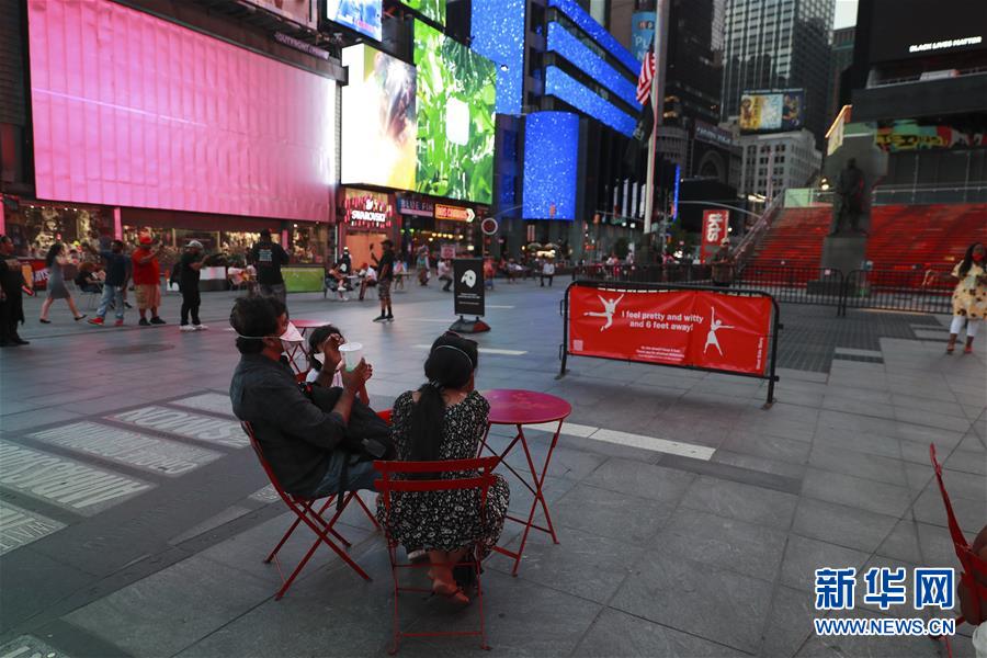 6月27日,人們在美國紐約時報廣場的公共休閑區(qū)休息。美國約翰斯·霍普金斯大學(xué)27日發(fā)布的新冠疫情最新統(tǒng)計數(shù)據(jù)顯示,截至美國東部時間27日16時35分(北京時間28日4時35分),美國累計新冠確診病例2500419例,累計死亡病例125434例。新華社記者王迎攝