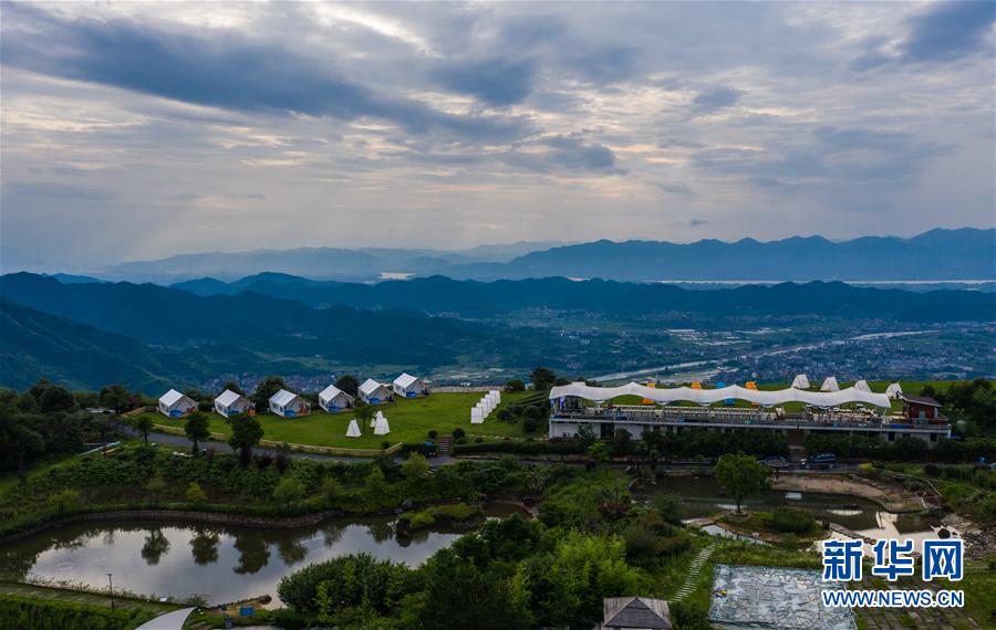 空中俯瞰杭州市富陽區(qū)常安鎮(zhèn)永安山頂的帳篷酒店(6月27日攝,無人機照片)。近期,浙江省杭州市富陽區(qū)場口鎮(zhèn)、常安鎮(zhèn)和湖源鄉(xiāng)組團開啟了一場夏季“綠水青山嘉年華”。這幾個壺源溪流域鄉(xiāng)鎮(zhèn)整合生態(tài)旅游資源,組團開發(fā)山村旅游項目,游客可以參與壺源溪水上游樂、露營永安山頂、特色農產品集市和瓜果節(jié)等特色活動。新華社記者徐昱攝