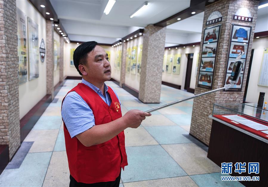 6月29日,新登鎮(zhèn)塔山村黨委書記林立平在當(dāng)?shù)匾患腋锩o(jì)念館進(jìn)行直播介紹,推介紅色旅游資源。近日,浙江省杭州市富陽區(qū)新登鎮(zhèn)來自不同領(lǐng)域、有著不同身份的基層黨員們紛紛化身網(wǎng)絡(luò)“主播”,借助抖音、朋友圈等網(wǎng)絡(luò)載體,傾情推介家鄉(xiāng)的山鄉(xiāng)風(fēng)貌、山鄉(xiāng)味道、山鄉(xiāng)民俗、山鄉(xiāng)風(fēng)情。新華社記者徐昱攝