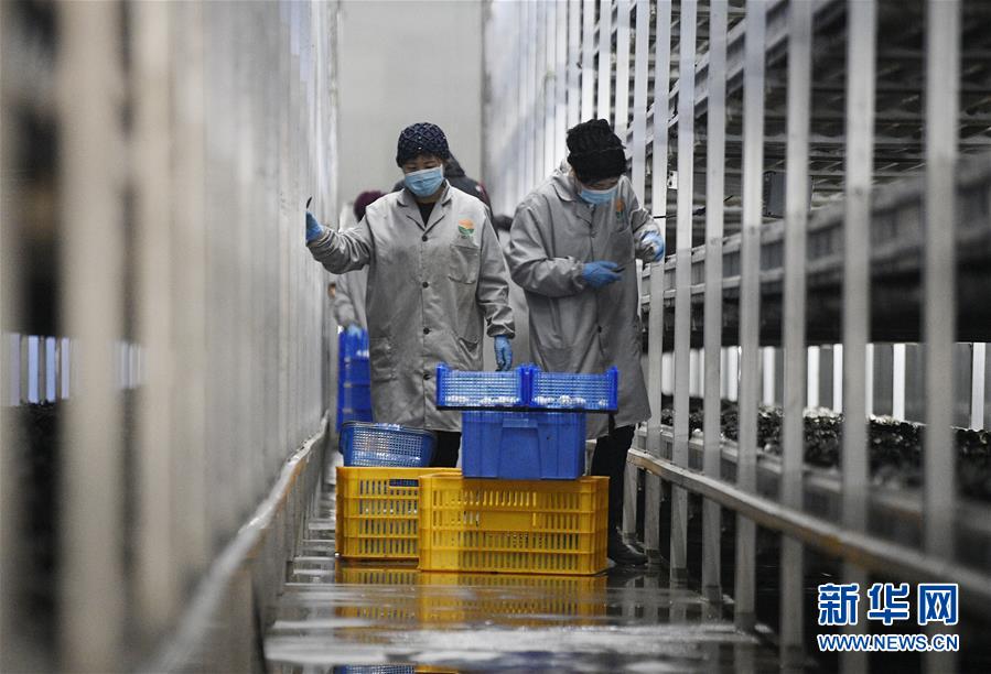 2020年3月18日,在寧夏銀川市永寧縣閩寧鎮(zhèn)雙孢菇栽培示范基地,農(nóng)民在采摘蘑菇。新華社記者王鵬攝