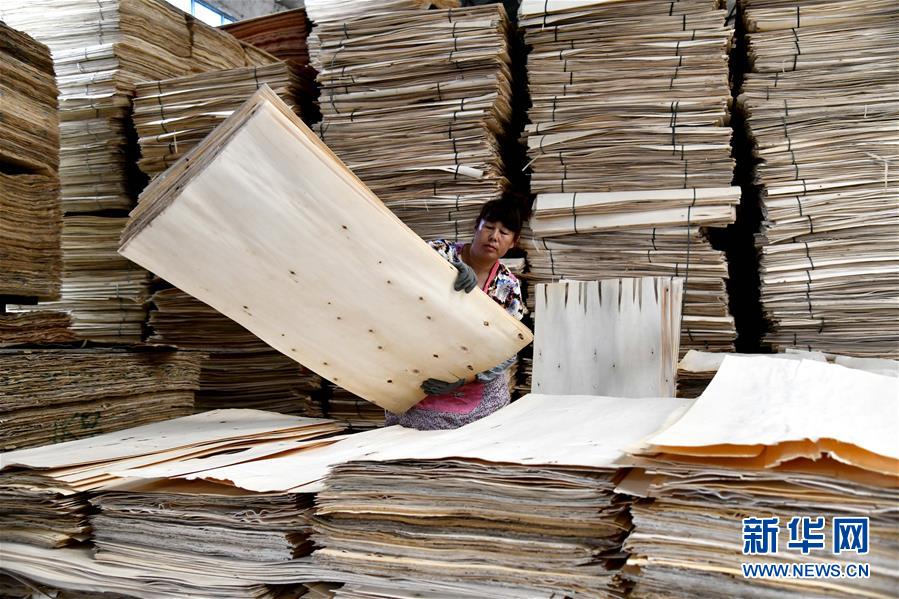 6月30日,在費(fèi)縣坤林木業(yè)有限公司,工人在整理板材原料。地處沂蒙革命老區(qū)的山東省臨沂市費(fèi)縣探沂鎮(zhèn)近年來(lái)圍繞鄉(xiāng)村振興戰(zhàn)略,謀劃“一鎮(zhèn)一業(yè)”,以木業(yè)產(chǎn)業(yè)為抓手,積極引導(dǎo)全鎮(zhèn)3136家木業(yè)企業(yè)進(jìn)行園區(qū)化、集約化、智能化發(fā)展,成為遠(yuǎn)近聞名的“木業(yè)特色小鎮(zhèn)”。2019年,該鎮(zhèn)規(guī)模以上工業(yè)總產(chǎn)值187億元,農(nóng)民人均純收入2萬(wàn)元左右,木業(yè)產(chǎn)業(yè)有力助推當(dāng)?shù)氐泥l(xiāng)村振興。新華社記者郭緒雷攝