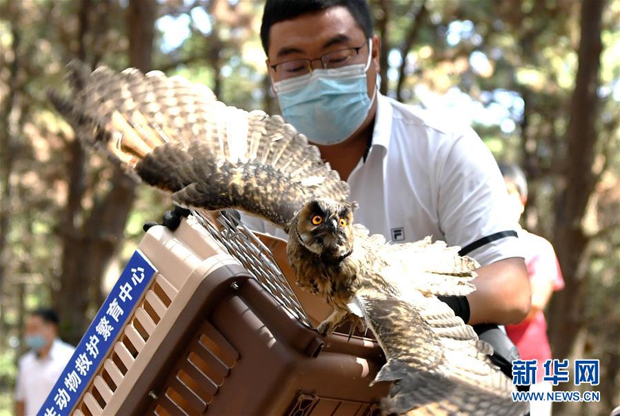 7月1日,吉林省野生動物救護繁育中心工作人員放飛一只長耳鸮。當(dāng)日,吉林省東北虎園舉行放飛活動,吉林省野生動物救護繁育中心救護的40只珍稀野生鳥類成功放歸自然。新華社記者林宏攝