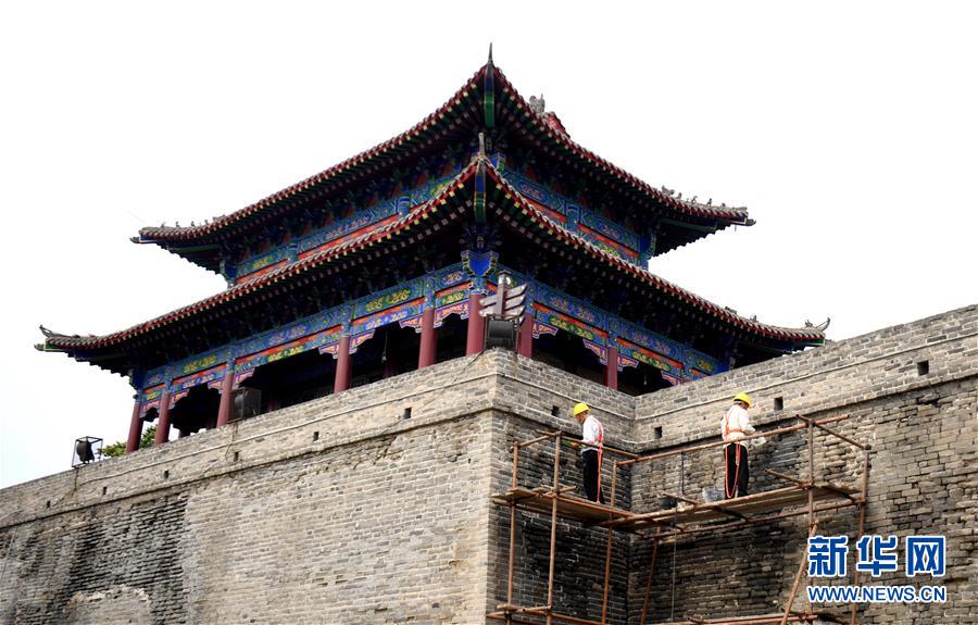 7月2日,工作人員在永年廣府古城修繕城墻。經(jīng)國(guó)家文物局和河北省文物局批準(zhǔn),河北永年廣府古城修繕工程已全面啟動(dòng)。在文物專家全程參與下,按照“不改變文物原狀”原則進(jìn)行修繕,預(yù)計(jì)2021年4月底完工。永年廣府古城擁有華北地區(qū)保存最完整的古城墻,現(xiàn)為全國(guó)重點(diǎn)文物保護(hù)單位。新華社記者王曉攝