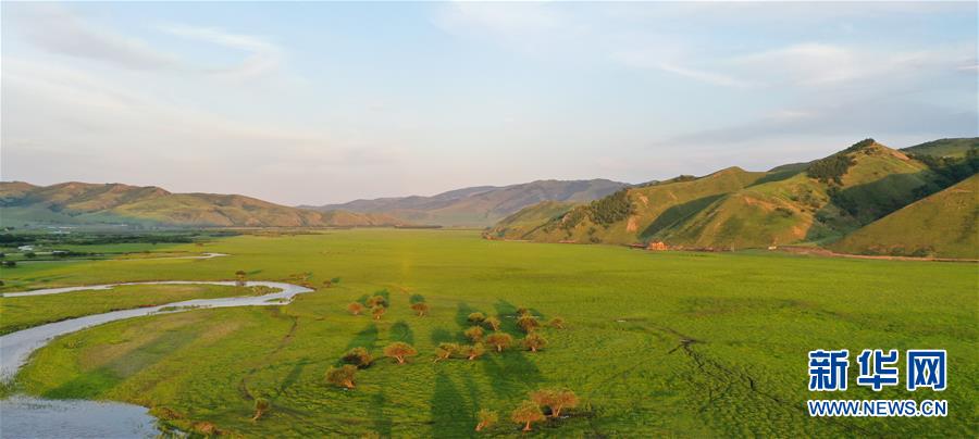 烏蘭毛都草原景色(7月1日無人機照片)。盛夏時節(jié),內(nèi)蒙古興安盟科爾沁右翼前旗的烏蘭毛都草原綠意盎然,風(fēng)景醉人。烏蘭毛都草原地處大興安嶺南麓,屬丘陵山地草原,風(fēng)光獨特。新華社記者徐欽攝