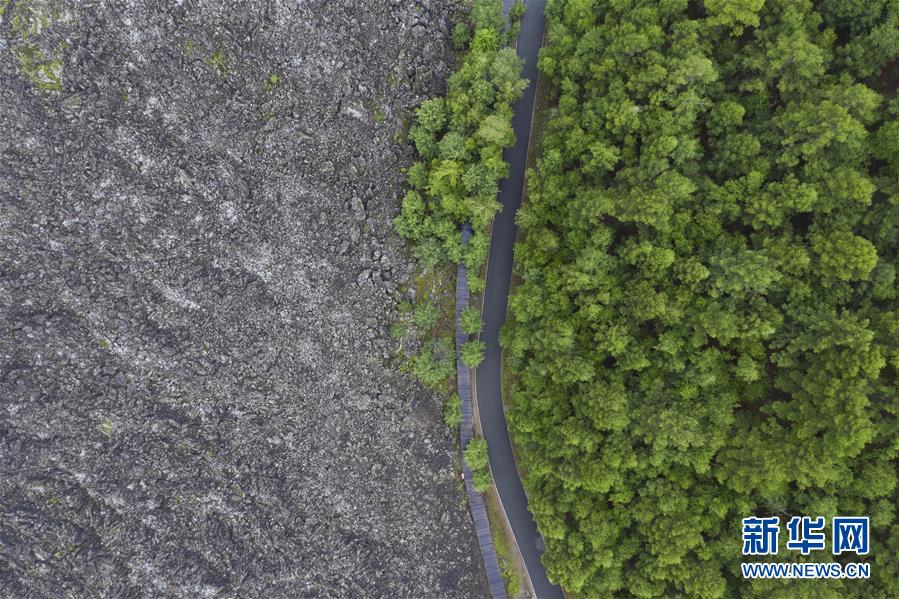 這是7月3日拍攝的五大連池風景區(qū)(無人機照片)。 時下,五大連池風景區(qū)內(nèi)植被蔥蘢,在火山、熔巖臺地、火山堰塞湖的映襯下,景色壯美。 五大連池風景區(qū)位于黑龍江省黑河市,是較為典型和完整的近代火山噴發(fā)遺跡,被喻為“天然的火山博物館”。 新華社記者 謝劍飛 攝