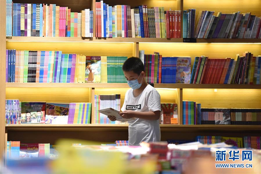 7月5日,一名小朋友在河北省定州市新華書(shū)店挑選圖書(shū)。近日,河北省定州市新華書(shū)店在做好疫情防控的前提下,開(kāi)展“樂(lè)享圖書(shū)嘉年華”系列活動(dòng),通過(guò)舉辦圖書(shū)聯(lián)展、親子閱讀、少兒讀物推介等活動(dòng),吸引少年兒童走進(jìn)圖書(shū)館,感受書(shū)香陪伴的夏天。新華社記者朱旭東攝