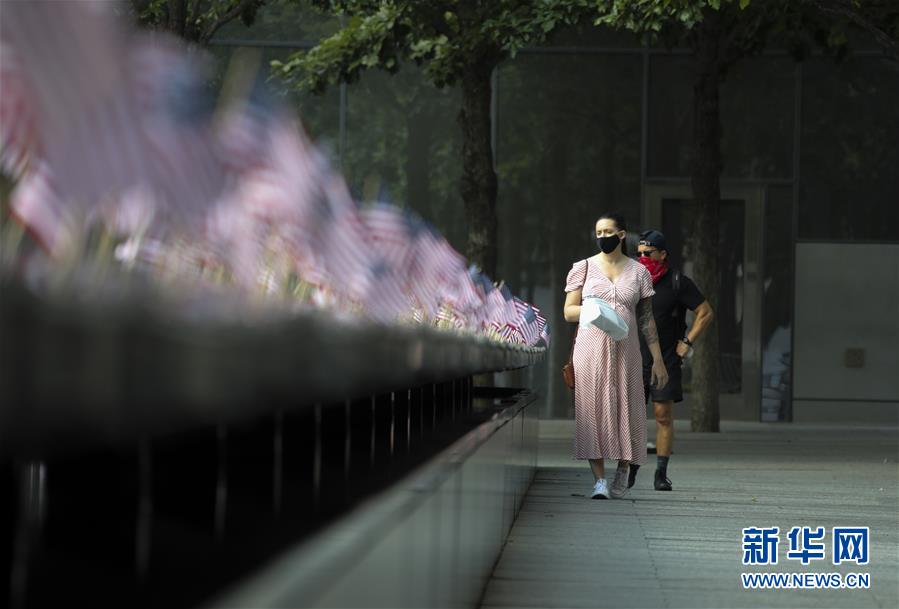 7月4日,參觀者在當日重新開放的美國紐約“9·11”世貿(mào)中心遺址參觀。當日是美國獨立日,美國多地疫情仍面臨嚴峻形勢。美國約翰斯·霍普金斯大學實時統(tǒng)計數(shù)據(jù)顯示,美國累計新冠確診病例4日已超過280萬例。新華社記者王迎攝