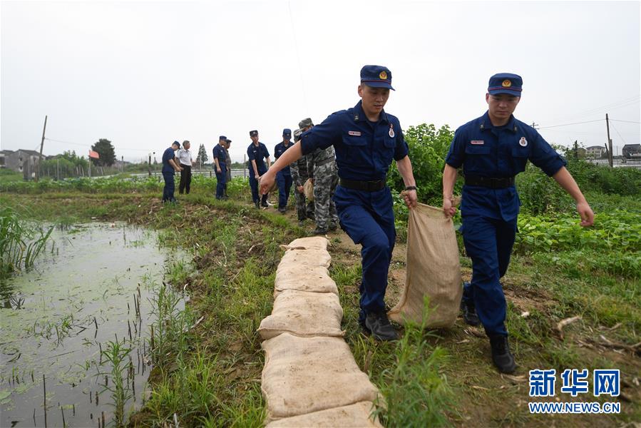 7月7日,吳興區(qū)消防救援大隊隊員在織里鎮(zhèn)曹家籪村幫助村民加固防洪堤。近日,位于浙江北部的湖州市遭遇多輪降雨,東部平原河網(wǎng)普遍超警戒水位,水庫山塘高位運(yùn)行。7月5日12時30分,湖州市人民政府防汛防旱指揮部將防汛應(yīng)急響應(yīng)提升至Ⅲ級,要求各地密切監(jiān)測汛情,切實(shí)做好各項防范工作,確保安全度汛。新華社記者黃宗治攝