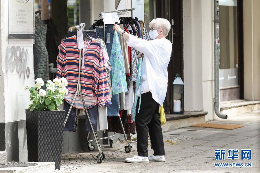 7月7日,一名佩戴口罩的女子在德國首都柏林的一家商店外挑選衣服。針對有地方官員呼吁取消民眾乘坐公交車和在商場購物時(shí)須戴口罩的規(guī)定,德國聯(lián)邦政府6日表示,支持延續(xù)“口罩強(qiáng)制令”。4月底,德國全部16個(gè)聯(lián)邦州陸續(xù)出臺“口罩強(qiáng)制令”,即居民在乘坐公交車和購物時(shí)須佩戴口罩。新華社記者單宇琦攝