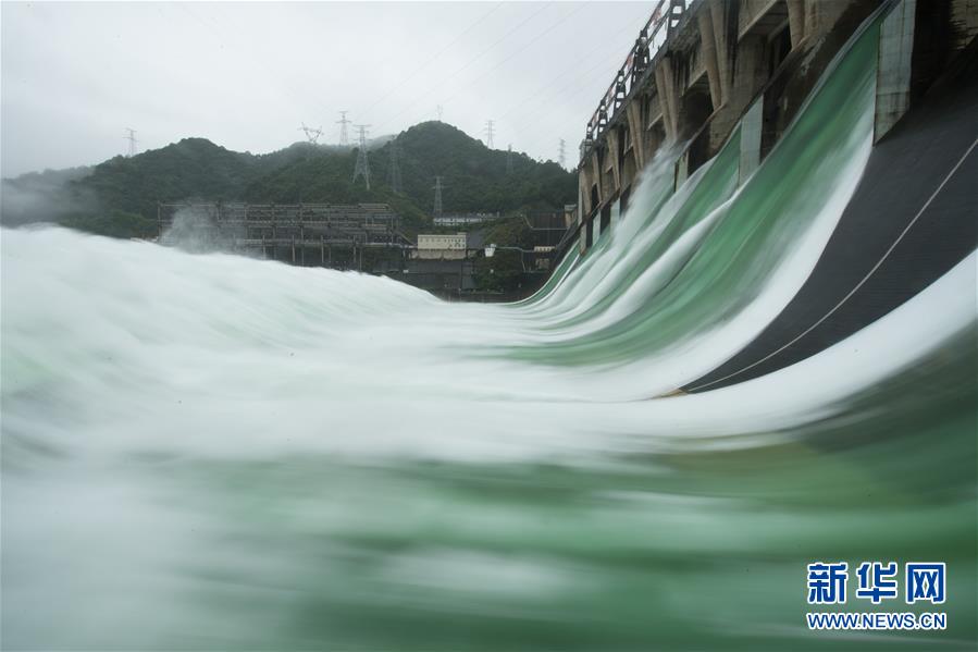 7月7日下午開啟7孔泄洪的新安江水庫。受持續(xù)降水影響,浙江新安江水庫水位持續(xù)快速上升。繼當日10時開啟3孔、12時開啟5孔泄洪后,新安江水庫于16時增加到7孔泄洪。新安江水庫是華東地區(qū)最大的水庫,在錢塘江流域的防洪度汛中起到關鍵作用。新華社記者翁忻旸攝