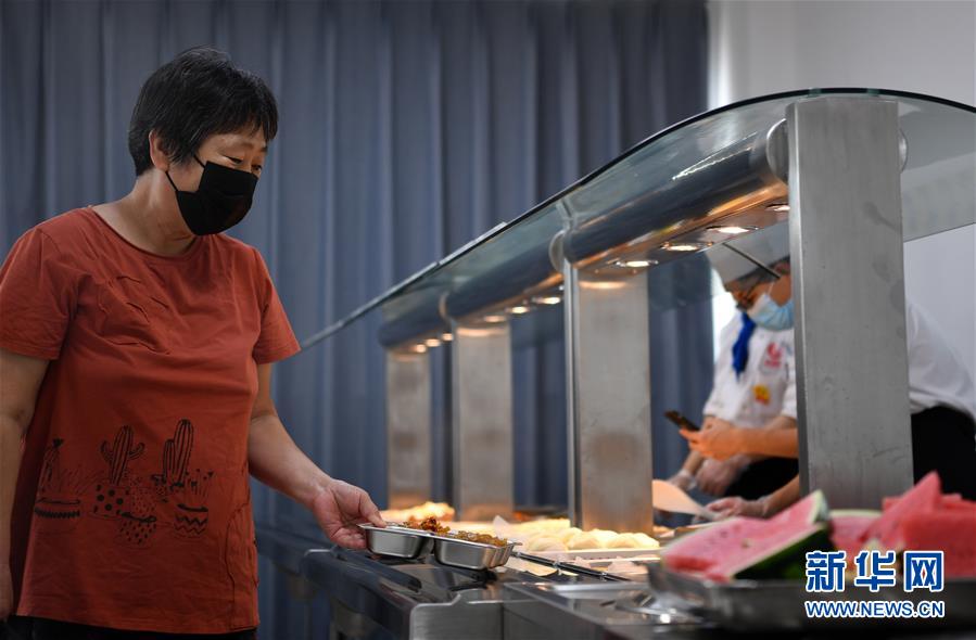7月7日,老人在付村康養(yǎng)中心(老人家食堂)打餐。近日,天津市西青區(qū)精武鎮(zhèn)付村康養(yǎng)中心(老人家食堂)運(yùn)營(yíng)已步入正軌。該老人家食堂面積約850平方米,由專業(yè)餐飲企業(yè)負(fù)責(zé)日常運(yùn)營(yíng),并享受政府補(bǔ)貼,可滿足付村及周邊老人的就餐需求,還能提供外帶、送餐服務(wù)。據(jù)了解,為切實(shí)解決老年人吃飯難問題、增加老年人幸福感,西青區(qū)將老人家食堂建設(shè)納入2020年區(qū)政府民心工程。目前,已建成51家老人家食堂。新華社記者李然攝
