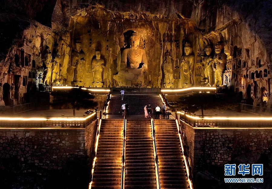 7月7日,游客在洛陽(yáng)龍門石窟景區(qū)奉先寺夜游(無(wú)人機(jī)照片)。近日,河南洛陽(yáng)的夜晚愈發(fā)繽紛多彩。立足于厚重的隋唐文化底蘊(yùn),洛陽(yáng)正通過(guò)創(chuàng)新夜游產(chǎn)品打響“古都夜八點(diǎn)”品牌,激活文旅消費(fèi)。新華社記者李安攝