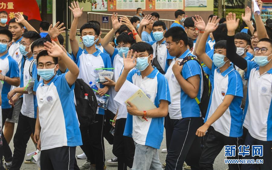 7月8日,在福建省福州教育學(xué)院附屬中學(xué)考點,考生和同學(xué)揮手告別。當日,全國部分地區(qū)2020年高考結(jié)束。新華社記者宋為偉攝