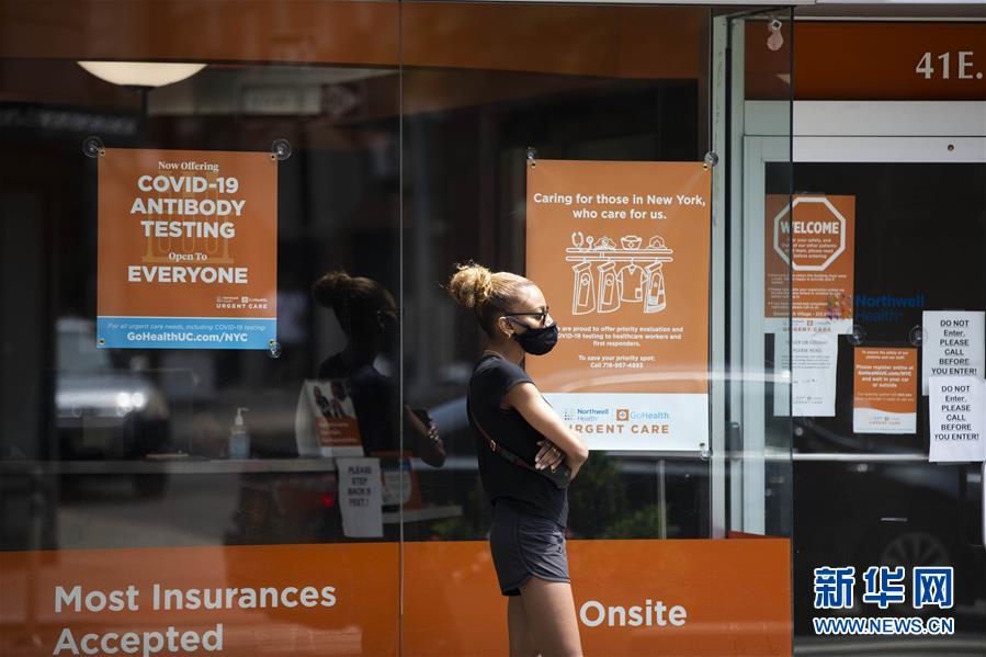 7月8日,一名女子在美國(guó)紐約一家診所外等候進(jìn)行新冠病毒檢測(cè)。美國(guó)約翰斯·霍普金斯大學(xué)8日發(fā)布的新冠疫情最新統(tǒng)計(jì)數(shù)據(jù)顯示,美國(guó)累計(jì)確診病例超過(guò)300萬(wàn)例。數(shù)據(jù)顯示,截至美國(guó)東部時(shí)間8日11時(shí)34分(北京時(shí)間23時(shí)34分),美國(guó)累計(jì)確診病例3016515例,累計(jì)死亡病例131594例。新華社記者王迎攝