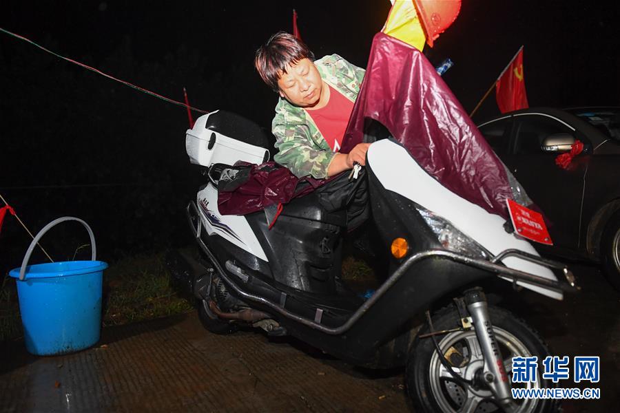 7月7日深夜,在沅江市南嘴鎮(zhèn)目平湖大堤參加防汛值守的村民交接班后準(zhǔn)備騎車(chē)回家。新華社記者陳澤國(guó)攝