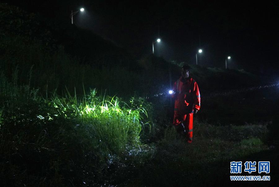 7月9日,邵忠如冒雨夜巡圩堤。新華社記者萬象攝