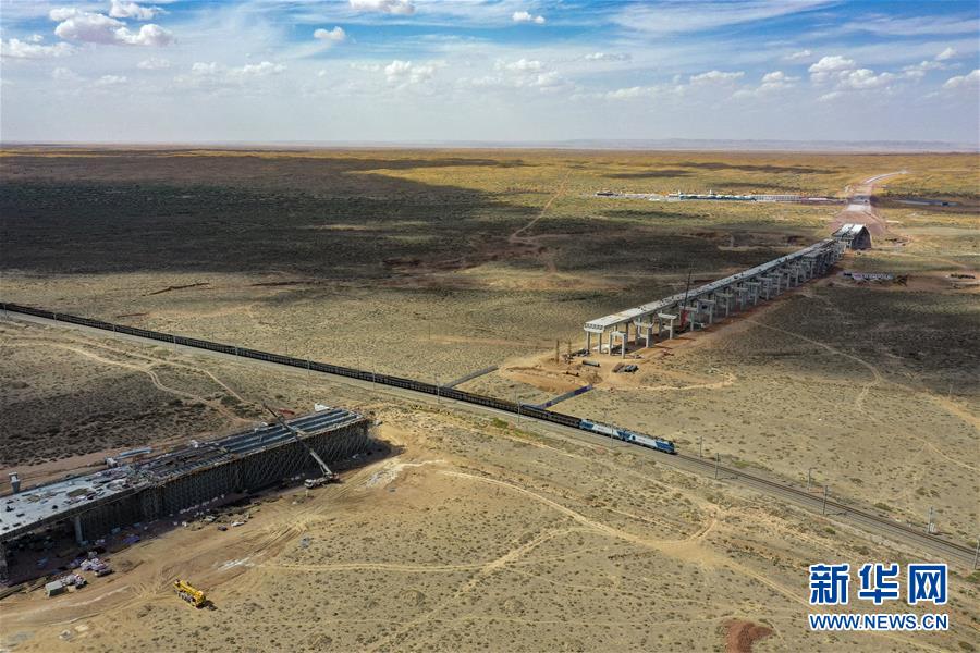 烏瑪高速青銅峽至中衛(wèi)段穿越騰格里沙漠的18公里路段,與中國(guó)首條沙漠鐵路——包蘭鐵路交匯(7月10日攝,無(wú)人機(jī)照片)。盛夏時(shí)節(jié),位于寧夏境內(nèi)的烏瑪(內(nèi)蒙古烏海市至青海瑪沁縣)高速青銅峽至中衛(wèi)段正在抓緊施工建設(shè)。該路段主線全長(zhǎng)122.9公里,其中穿越騰格里沙漠腹地的18公里公路是寧夏建設(shè)的首條沙漠高速公路,預(yù)計(jì)2021年建成通車。新華社記者馮開(kāi)華攝。