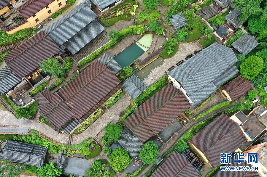 7月11日拍攝的金秀瑤族自治縣六巷鄉(xiāng)的一處民宿(無(wú)人機(jī)照片)。近年來(lái),廣西金秀瑤族自治縣依托當(dāng)?shù)刈匀簧鷳B(tài)優(yōu)勢(shì),圍繞境內(nèi)豐富的瑤族文化,大力發(fā)展鄉(xiāng)村旅游,精心打造一批獨(dú)具瑤族特色的山間民宿酒店,取得良好經(jīng)濟(jì)效益。新華社記者 周華 攝