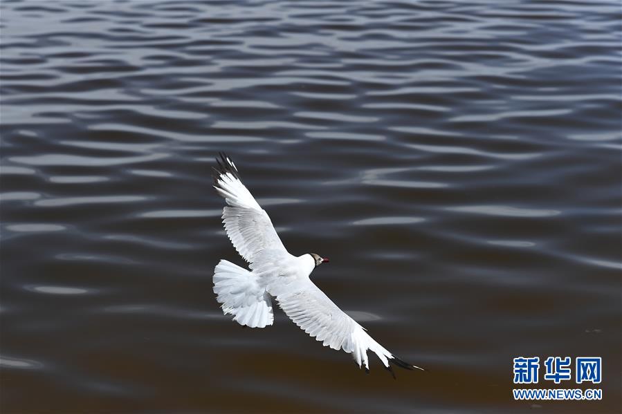 7月10日,一只棕頭鷗從青海湖湖面上飛過(guò)。盛夏時(shí)節(jié),被譽(yù)為“中國(guó)最美湖泊”的青海湖畔景色宜人,藍(lán)天、白云、湖水與草原組成一幅壯美的畫(huà)卷。新華社記者 張宏祥 攝