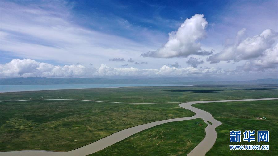 7月10日拍攝的青海湖畔風(fēng)光(無人機照片)。盛夏時節(jié),被譽為“中國最美湖泊”的青海湖畔景色宜人,藍天、白云、湖水與草原組成一幅壯美的畫卷。新華社記者 張宏祥 攝