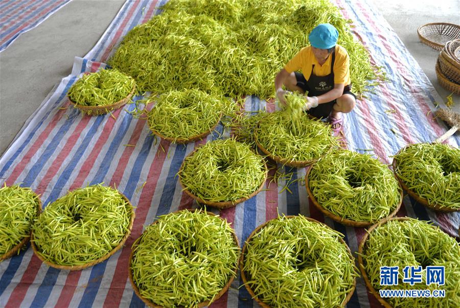 7月12日,祁東縣黃土鋪鎮(zhèn)雷公殿村,村民在分揀黃花菜,準備通過傳統(tǒng)的加工工藝進行蒸煮殺青。新華社記者 趙眾志 攝