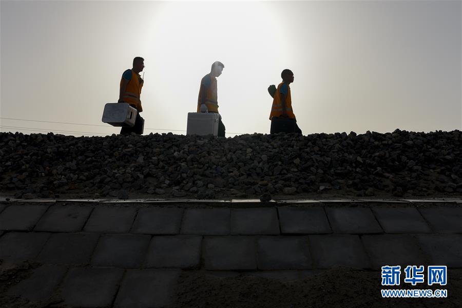 鋼軌打磨機組的技術(shù)員拿著檢測設(shè)備前往下一個檢測點(7月14日攝)。新華社記者 丁磊 攝