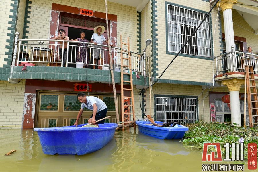 江西鄱陽村莊洪水圍困 留守村民劃船外出取生活物資