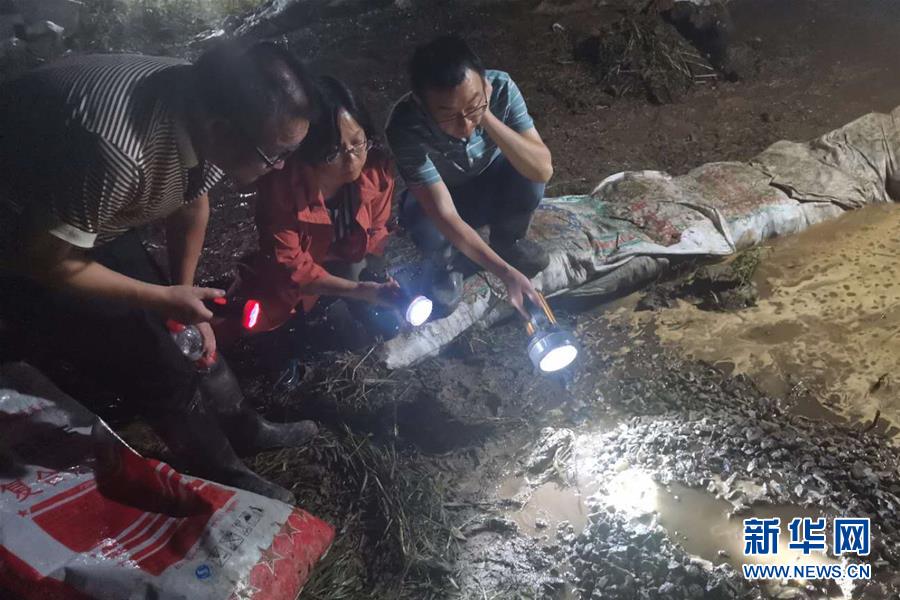 7月13日晚,樅陽(yáng)縣水利局高級(jí)工程師舒曉安(左一)在處置圩堤突發(fā)險(xiǎn)情。受長(zhǎng)江持續(xù)高水位影響,安徽省樅陽(yáng)縣的鐵銅鄉(xiāng)江心洲已于近日將江心洲上的居民轉(zhuǎn)移安置,而包括搶險(xiǎn)隊(duì)員、鄉(xiāng)鎮(zhèn)干部、水利工程師等在內(nèi)的近300人“留守”在江心洲上巡堤查險(xiǎn),守護(hù)家園。鐵銅鄉(xiāng)位于長(zhǎng)江江心洲上,有4個(gè)行政村52個(gè)村民組,耕地面積12000多畝。新華社發(fā)