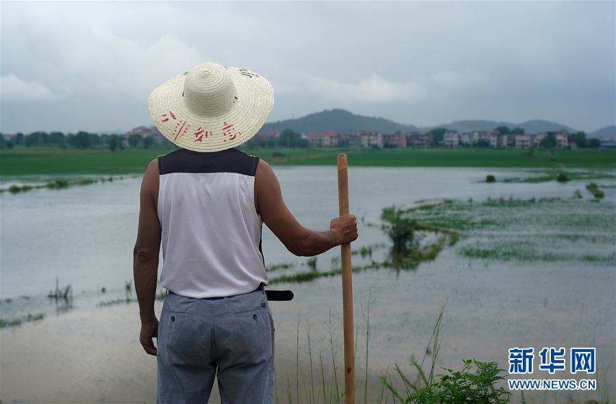 7月9日,邵忠如在圩堤上觀察水情,不遠(yuǎn)處就是他的村子。邵忠如是江西省樂平市樂港鎮(zhèn)邵灣村黨支部書記,今年56歲,負(fù)責(zé)中洲圩中一段700多米長(zhǎng)的圩堤的巡堤守堤工作。身前是洪水,身后是村子和稻田,老邵不敢有半點(diǎn)疏忽。6天6夜,老邵和村民們不間斷地值守在圩堤上,一天4個(gè)班,一班6人,每半小時(shí)巡堤一次,發(fā)現(xiàn)險(xiǎn)情立即處置。作為村支書,老邵更是幾乎全天都在圩堤上,實(shí)在困了才會(huì)睡一會(huì)兒。新華社記者萬象攝