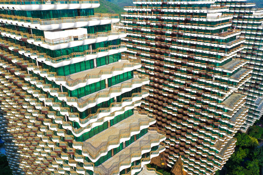 2020年7月20日,海南省三亞市,圖為航拍的“九棵大樹”建筑群,其具象性的建筑設(shè)計(jì)風(fēng)格,既有建筑之美,又見自然靈韻。