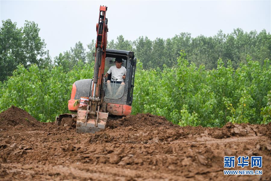 7月20日,在永固垸西線防洪大堤,工作人員處置滲漏險情。新華社記者陳澤國攝